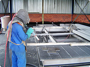 The corrosion protection of structural steelwork is undertaken in-house at our Glencoe premises. Steelwork can be abrasive blast cleaned and coated with both primer and intermediate coats in our yard. Our blasting facility of 1560m² is served by 2 Electric Overhead Cranes and features the latest anti-pollution measures. Final on-site painting including maintenance of existing steelwork is also done in-house or by carefully selected BEE sub-contractors. |