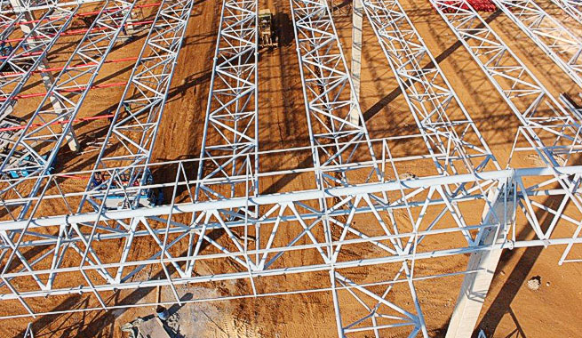 project required 616 tons of steel for its spaceframe structure, consisting of 140 main triangulated tubular trusses and 280 purlin trusses.